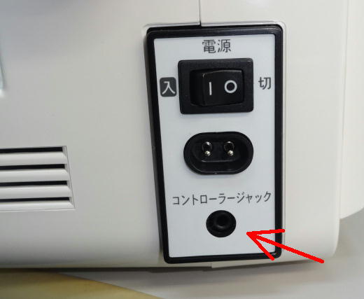 ※ミシンの型式によって、配置が違いますが「コントローラー」を使えるミシンには必ずございます。もし 「コントローラージャック」が無いときは、コントローラーが使えないタイプです。