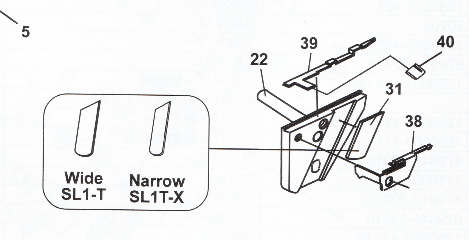 右側が「幅狭下メス SL1T-X」 幅8ミリ あります。