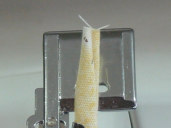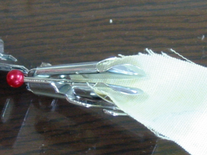 ここでミシンにセット。 ※もちろん バインダー押さえをミシンにセットしたままテープを入れられます。 |