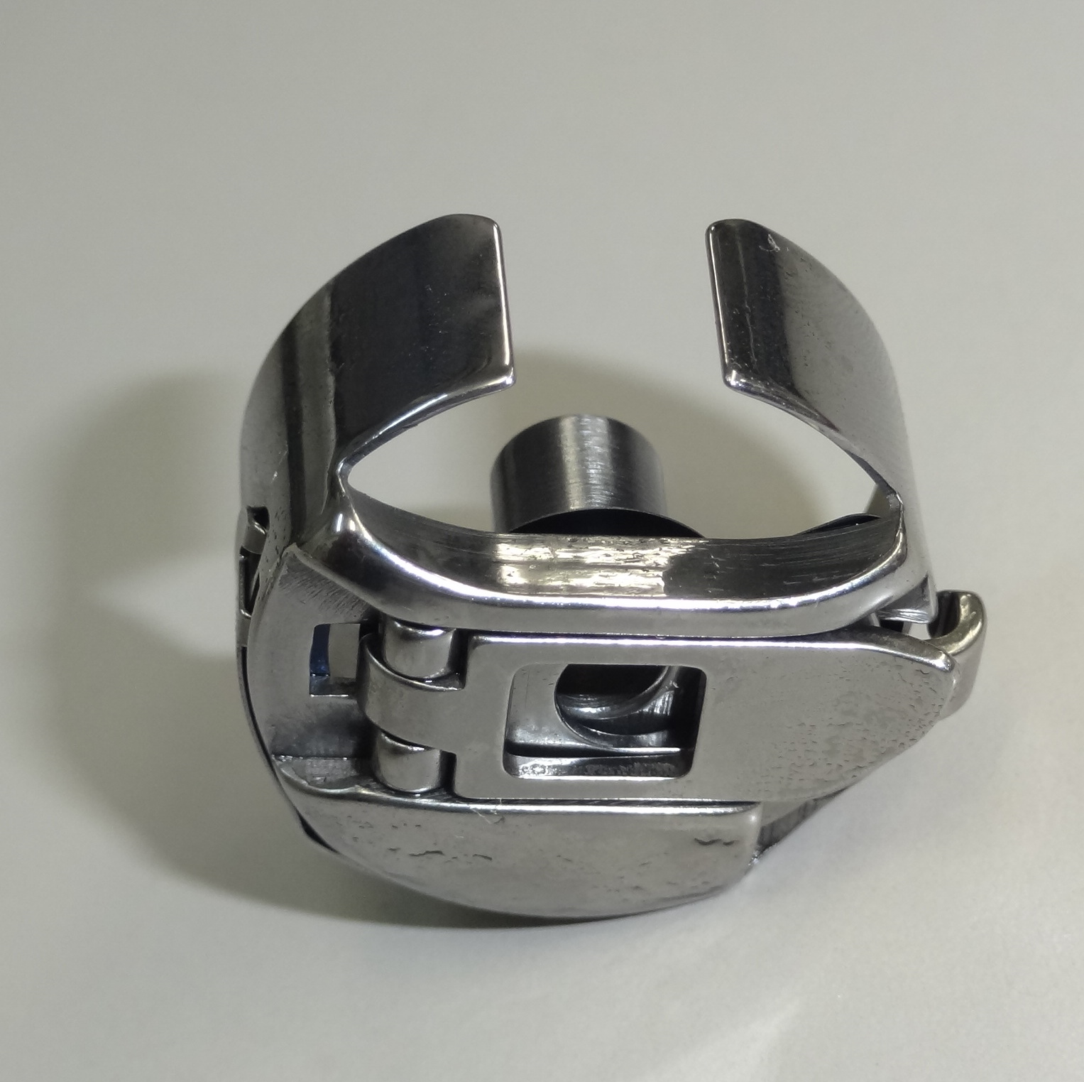 ボビンケースの中にバネが入っていますので、ボビンの空転を防いで、糸がらみや糸切れを防いでくれます。